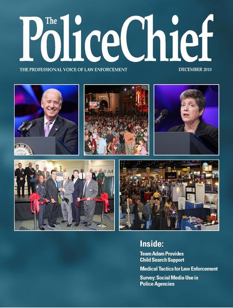 The Police Chief - December 2010 - (Page Cover1) THE PROFESSIONAL VOICE OF LAW ENFORCEMENT FEBRUARY 2010 DECEMBER 2009 Inside: Inside: XXXXXXXXXX Team Adam Provides Child Search Support Medical Tactics for Law Enforcement Survey: Social Media Use in Police Agencies Table of Contents for the Digital Edition of The Police Chief - December 2010 The Police Chief - December 2010 Contents President’s Message: IACP Strategic Plan: A Clear Blueprint for the Future Legislative Alert: Vice President Biden Speaks at IACP 2010 IACP Foundation: Foundation Success and Future Focus Chief's Counsel: What Every Police Chief Should Know About Electronic Control Devices Advances & Applications IACP Holds Global Summit on Terrorism Power Law Distribution and Solving the Crime Problem Perspective on Neurolinguistic Programming (NLP) Report of the 117th Annual IACP Conference: Orlando Board of Officers General Assemblies IACP Business Education Exhibit Hall Special Events Thank You, Orlando Resolutions Life Members New Members Exhibitor Update IACP Center for Social Media: Supporting the Needs of Law Enforcement Online Team Adam: Providing Missing Child Search Support for Police Agencies Medical Tactics for Law Enforcement: Development of the Rochester, Minnesota, Police Department Basic Tactical Casualty Care (BTCC) Course 2010 Author Index 2010 Subject Index Technology Talk IACP News Index to Advertisers Highway Safety Initiatives The Police Chief - December 2010 http://www.nxtbook.com/nxtbooks/naylor/CPIM0812 http://www.nxtbook.com/nxtbooks/naylor/CPIM0712 http://www.nxtbook.com/nxtbooks/naylor/CPIM0612 http://www.nxtbook.com/nxtbooks/naylor/CPIM0512 http://www.nxtbook.com/nxtbooks/naylor/CPIM0412 http://www.nxtbook.com/nxtbooks/naylor/CPIM0312 http://www.nxtbook.com/nxtbooks/naylor/CPIM0212 http://www.nxtbook.com/nxtbooks/naylor/CPIM0112 http://www.nxtbook.com/nxtbooks/naylor/CPIM1211 http://www.nxtbook.com/nxtbooks/naylor/CPIM1111 http://www.nxtbook.com/nxtbooks/naylor/CPIM1011 http://www.nxtbook.com/nxtbooks/naylor/CPIM0911 http://www.nxtbook.com/nxtbooks/naylor/CPIM0811 http://www.nxtbook.com/nxtbooks/naylor/CPIM0711 http://www.nxtbook.com/nxtbooks/naylor/CPIM0611 http://www.nxtbook.com/nxtbooks/naylor/CPIM0511 http://www.nxtbook.com/nxtbooks/naylor/CPIM0411 http://www.nxtbook.com/nxtbooks/naylor/CPIM0311 http://www.nxtbook.com/nxtbooks/naylor/CPIM0211 http://www.nxtbook.com/nxtbooks/naylor/CPIM0111 http://www.nxtbook.com/nxtbooks/naylor/CPIM1210 http://www.nxtbook.com/nxtbooks/naylor/CPIM1110 http://www.nxtbook.com/nxtbooks/naylor/CPIM1010 http://www.nxtbook.com/nxtbooks/naylor/CPIM0910 http://www.nxtbook.com/nxtbooks/naylor/CPIM0810 http://www.nxtbook.com/nxtbooks/naylor/CPIM0710 http://www.nxtbook.com/nxtbooks/naylor/CPIM0610 http://www.nxtbook.com/nxtbooks/naylor/CPIM0510 http://www.nxtbookMEDIA.com